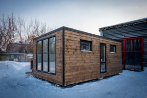 Это утепленный домик прямоугольной формы с панорамным окном и двумя помещениями: жилой комнатой и санузлом с душевой зоной. Может быть изготовлен по готовым стандартам или вашим индивидуальным размерам. Современные материалы, используемые при проектировании, отличаются экологичностью и прочностью.